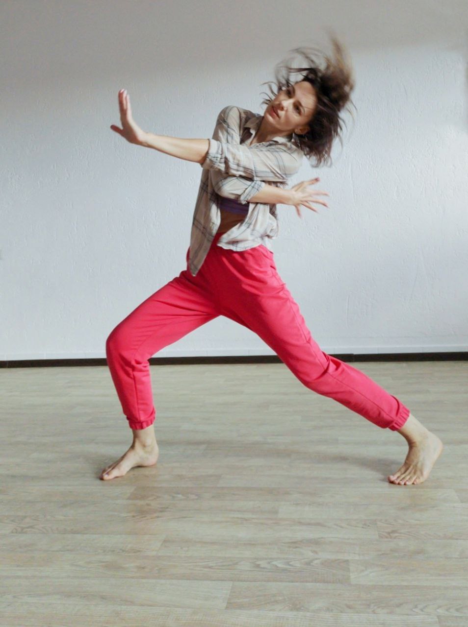 Вопреки распространенному мнению, строгих требований относительно одежды и обуви не существует. Удобно танцевать в чешках, балетках или джазовках, но мы вам рекомендуем заниматься просто босиком. Лучше, если одежда не будет стеснять движений.
